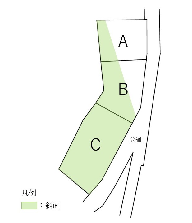 土地探しを進める中でであったのは、周囲に竹林や畑が広がる、斜面を含む3区画(A,B,C)の敷地でした。その中で、最も広く敷地のほとんどが斜面となっているC区画に、クライアントと建築家の目が留まりました。