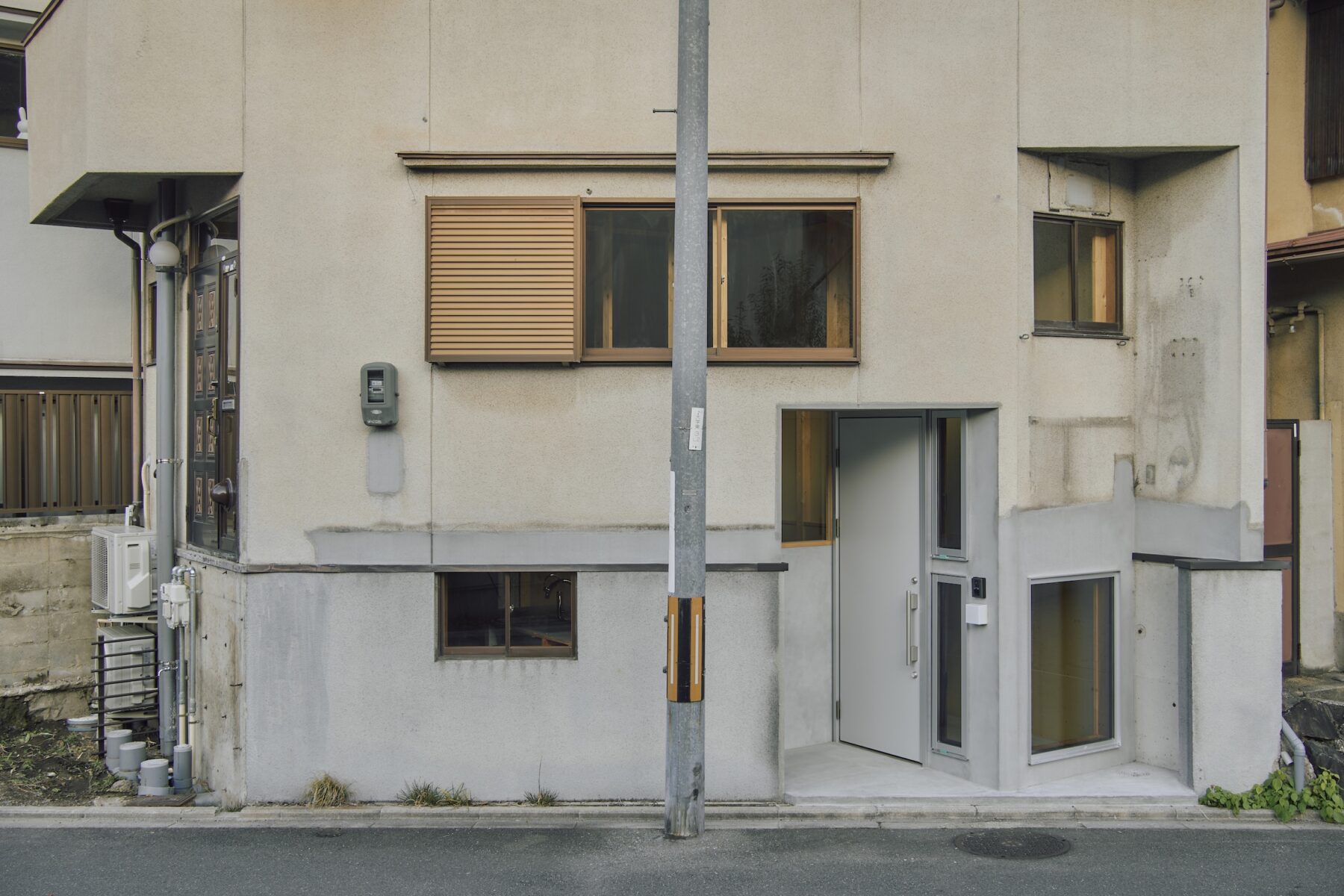 既存の窓が面白くなるように新しい玄関や窓をつけることで、不思議な佇まいをもった外観と、見る場所によって外の景色が変わる体験をつくっています。〈西原将〉