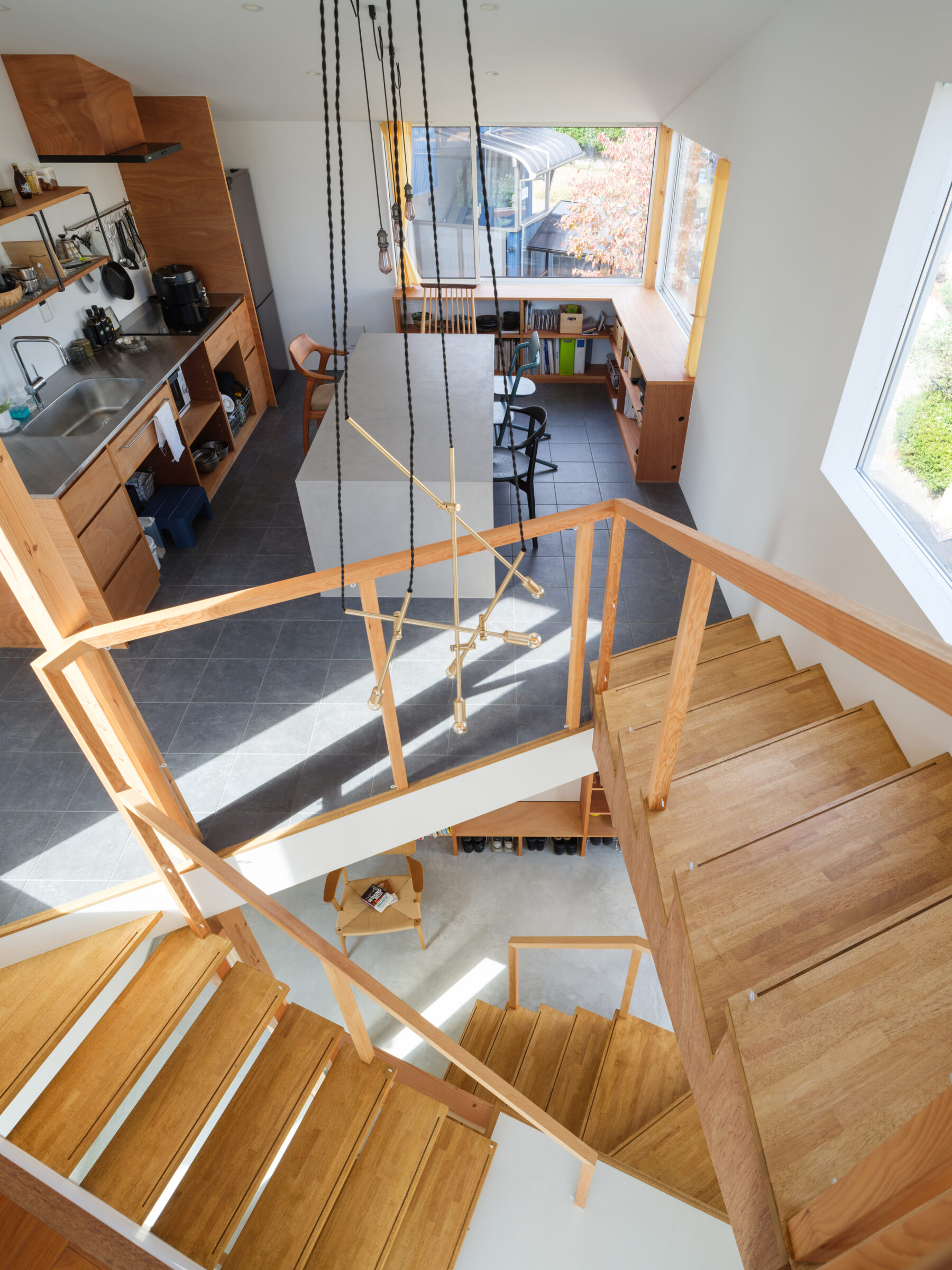 不動産広告が表現しきれない敷地状況を、実際に現地に赴いて、建築家・クライアントと共に読み解く事で、隣接した公園からの眺望を享受し、暖かい光が家全体に感じられるスキップフロアの住宅が完成しました。