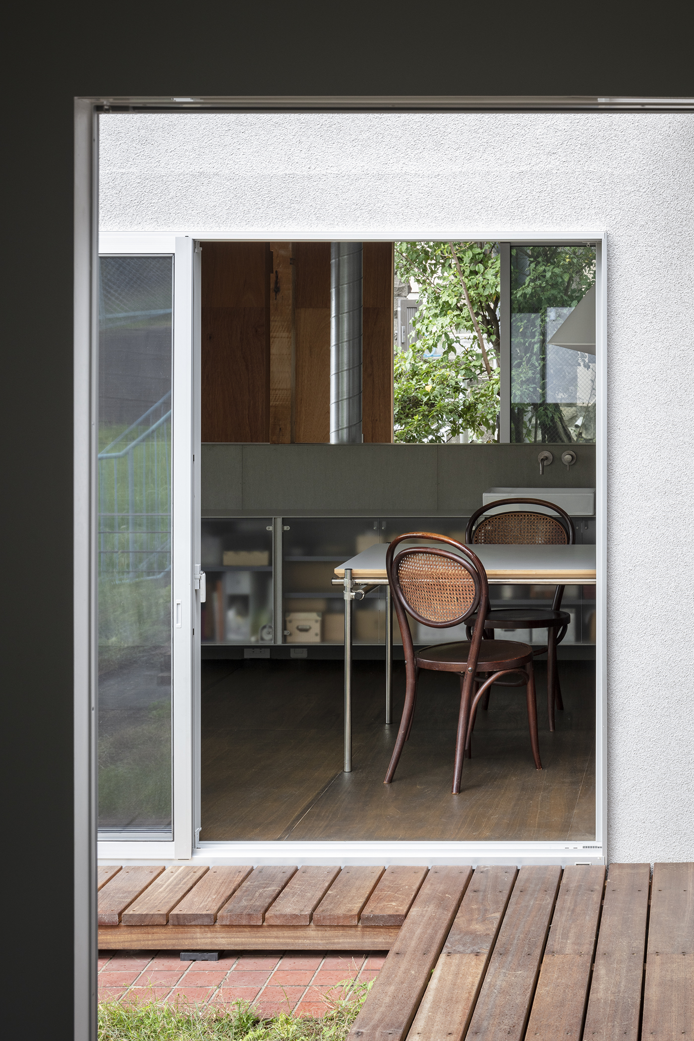 今後住まい方やアトリエの使い方は子供たちの成長とともに変わっていく。それまで建物が歩んできた時間を止めることなく、骨格として外界に繋がりを持ったこの建築は、新しく獲得した境界面を手がかりに今後変化し続けていくことを期待している。